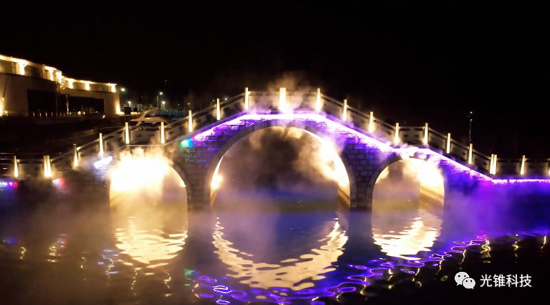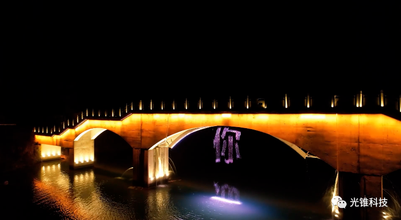 水幕電影、橋下水簾,流光溢彩、燈光璀璨-光錐又一項(xiàng)目順利完工