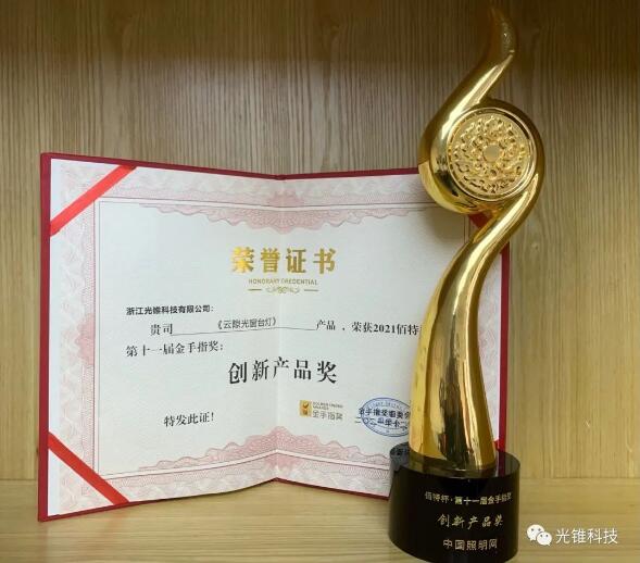 恭喜光錐科技-云隙光窗臺燈 榮獲第十一屆金手指獎-創(chuàng)新產(chǎn)品獎